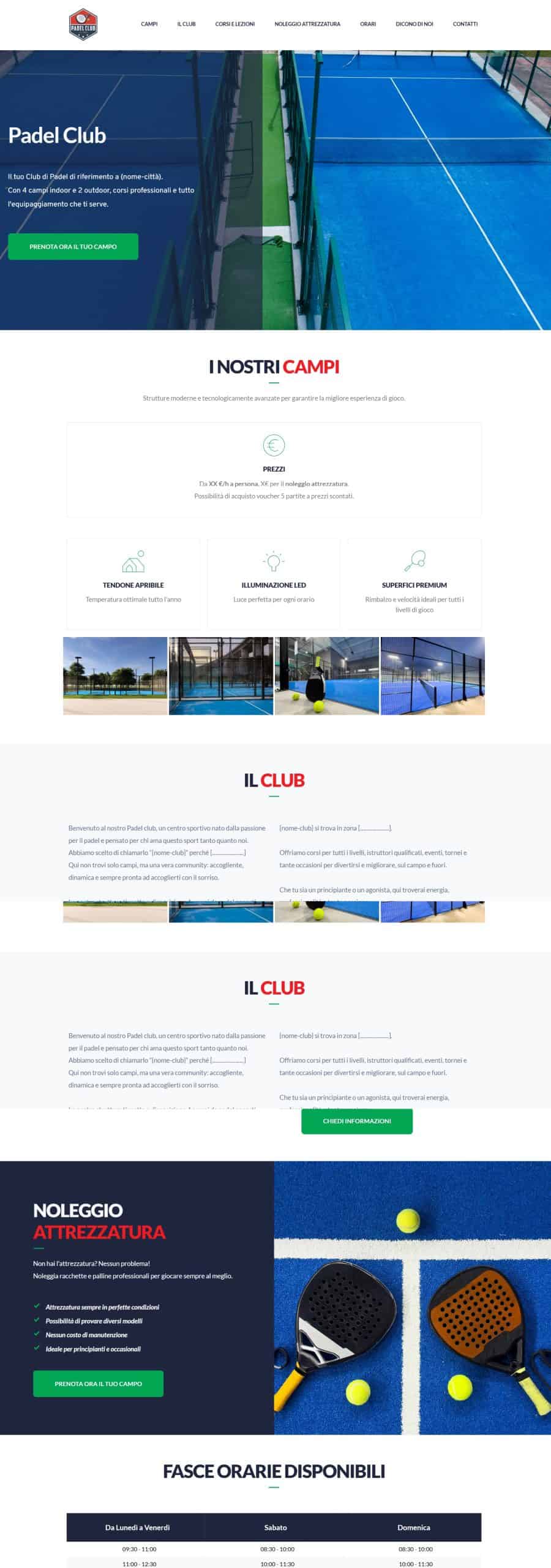 Abbiamo sviluppato un template ottimizzato per i centri padel, facile da personalizzare e collegato direttamente alla tua scheda Google Business Profile per ottenere il massimo posizionamento su Google.